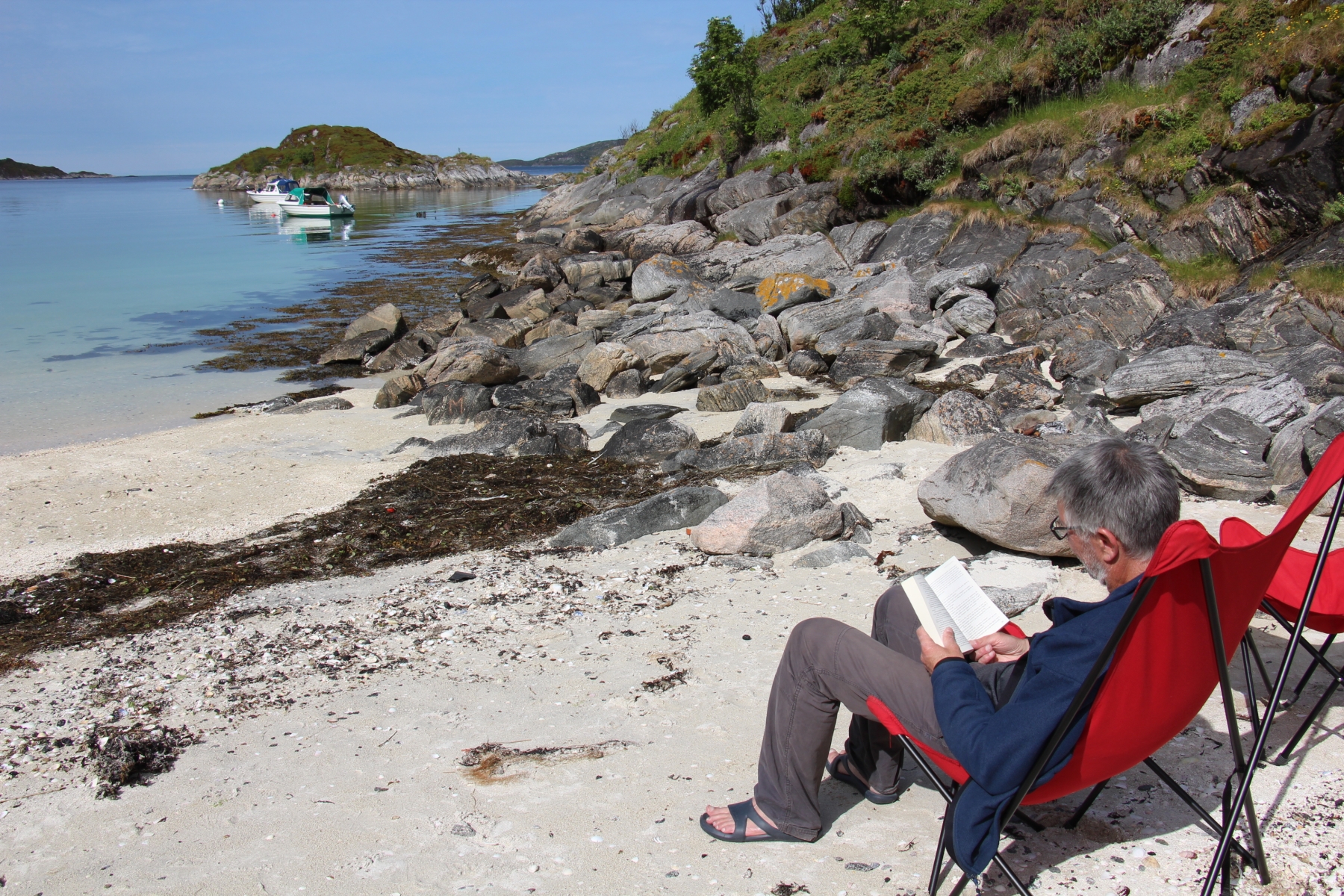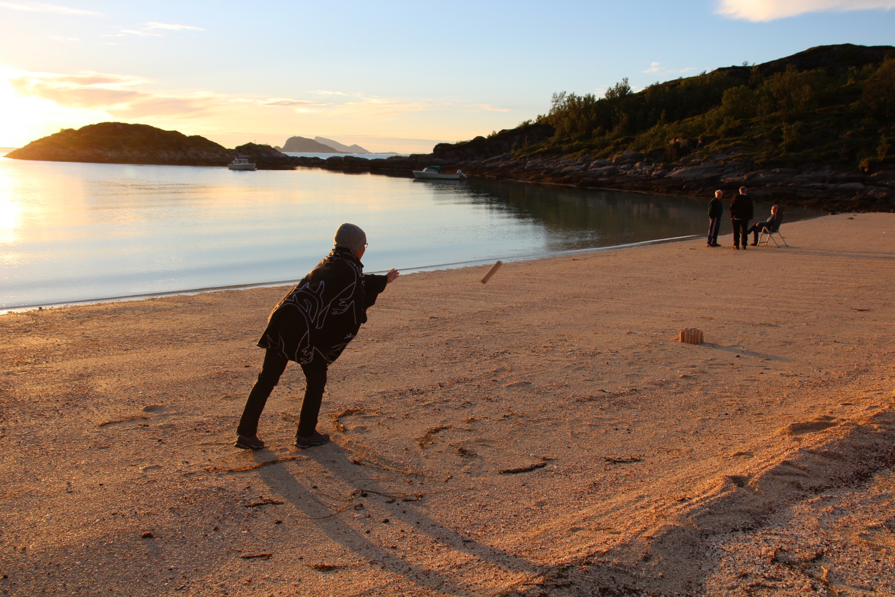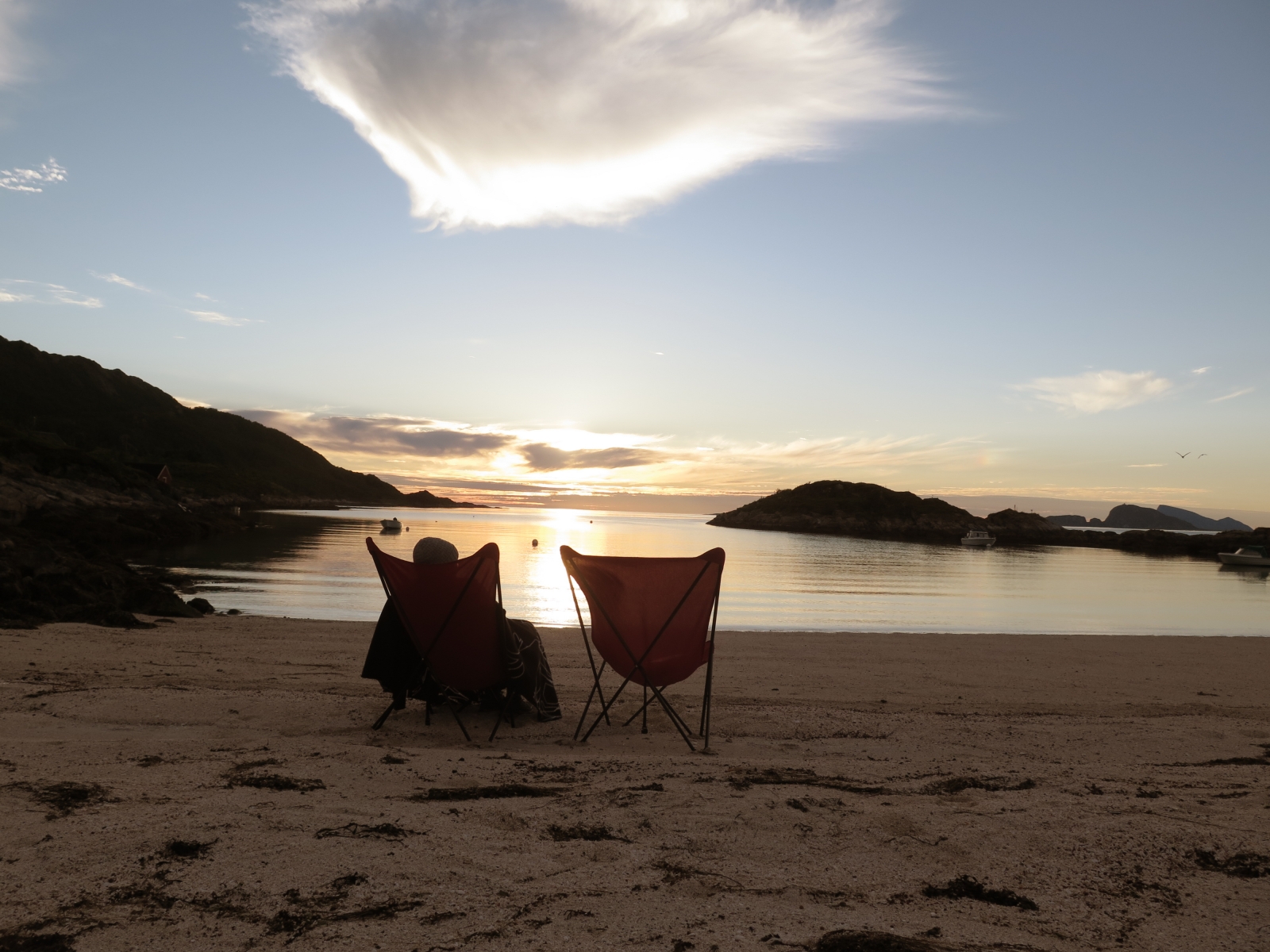 Barbecue sur la plage, molky (on est devenus des accros, sinon des champions) et attendre dans son fauteuil, enveloppée dans un plaid, que le soleil descende sur l’horizon, hésite, puis reparte vers l’est en remontant la pente…