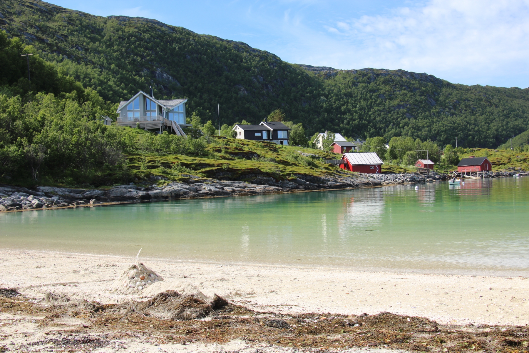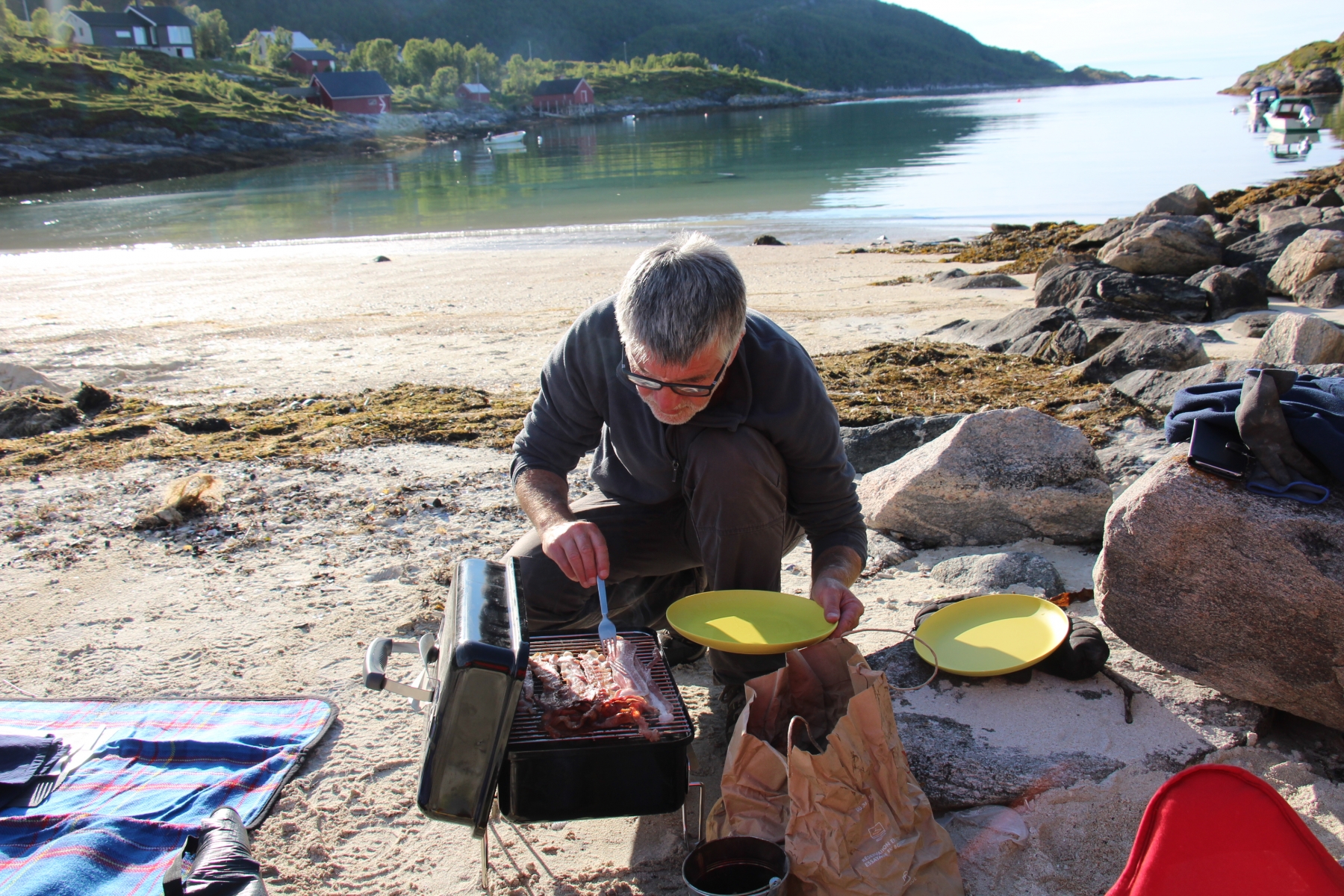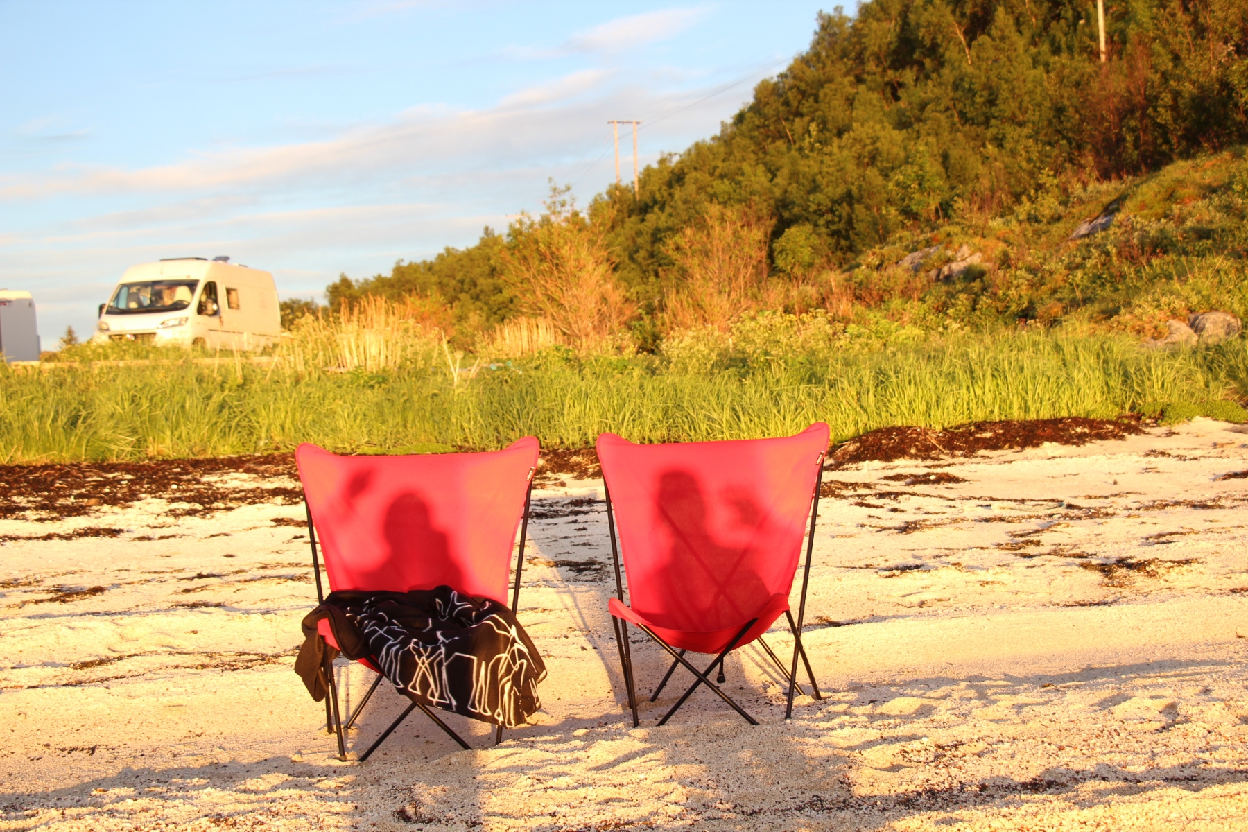Nous avons choisi pour bivouaquer une petite plage sur l’île de Senja qui donne plein Nord, les conditions sont idéales pour un soleil de minuit.