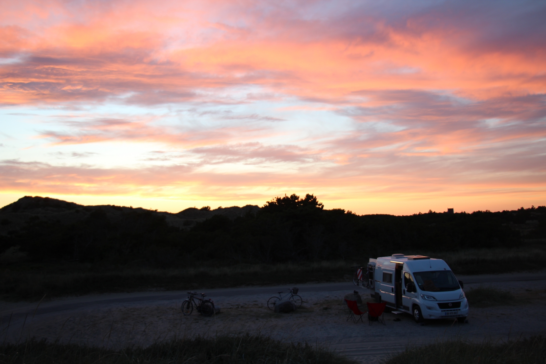 Nous sommes du côté de Skagen, tout au Nord du Danemark. Le paysage est totalement plat, avec juste un cordon dunaire sur la côte.