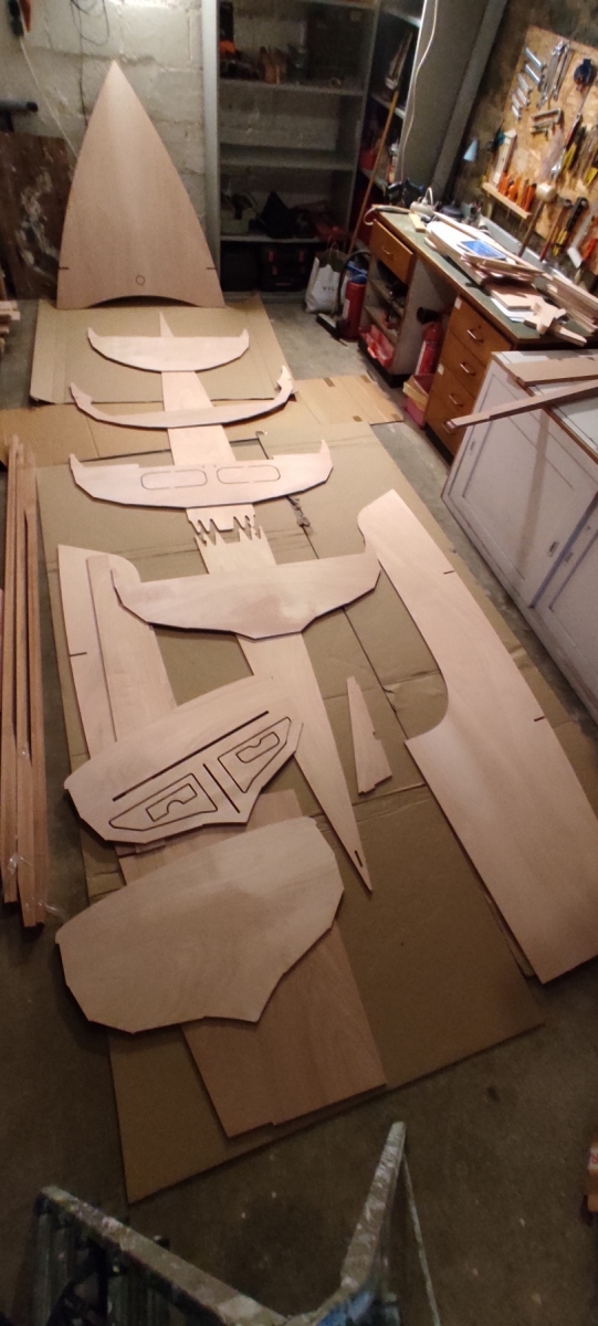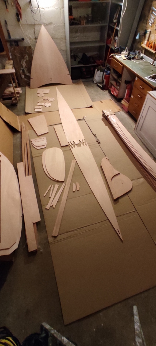 Vendredi, j’ai étalé les pièces sur le sol du futur chantier. j’aurai aimé faire un éclaté du bateau à l’image des crustacés naturalisés de chez Deyrolle mais je manque de surface.