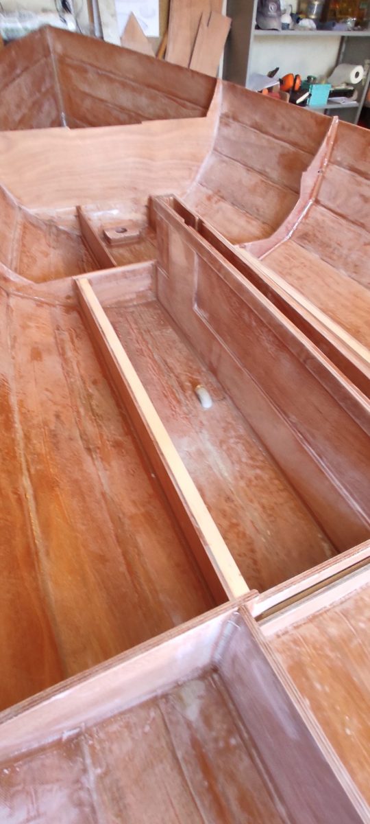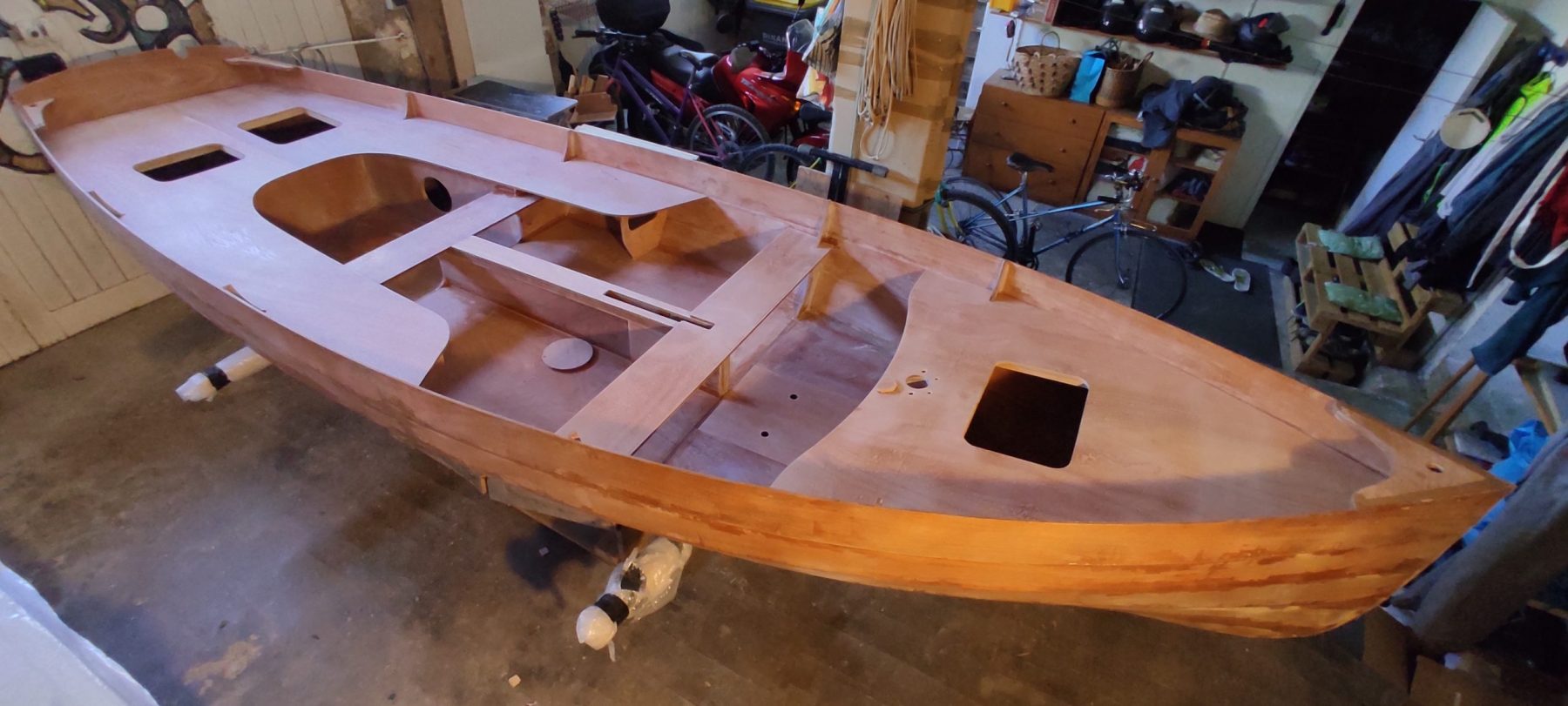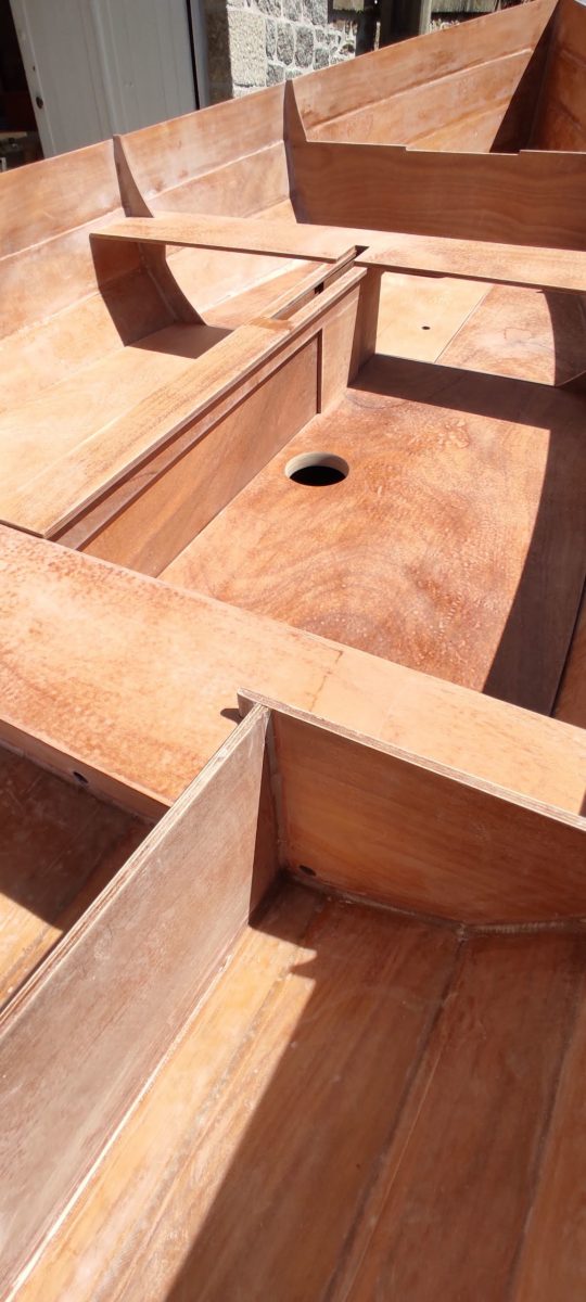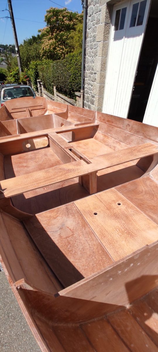 Et aujourd’hui, l’ensemble des éléments de contreplaqué reçu en décembre a déserté le fond de mon garage et le canot s’est un peu alourdi…