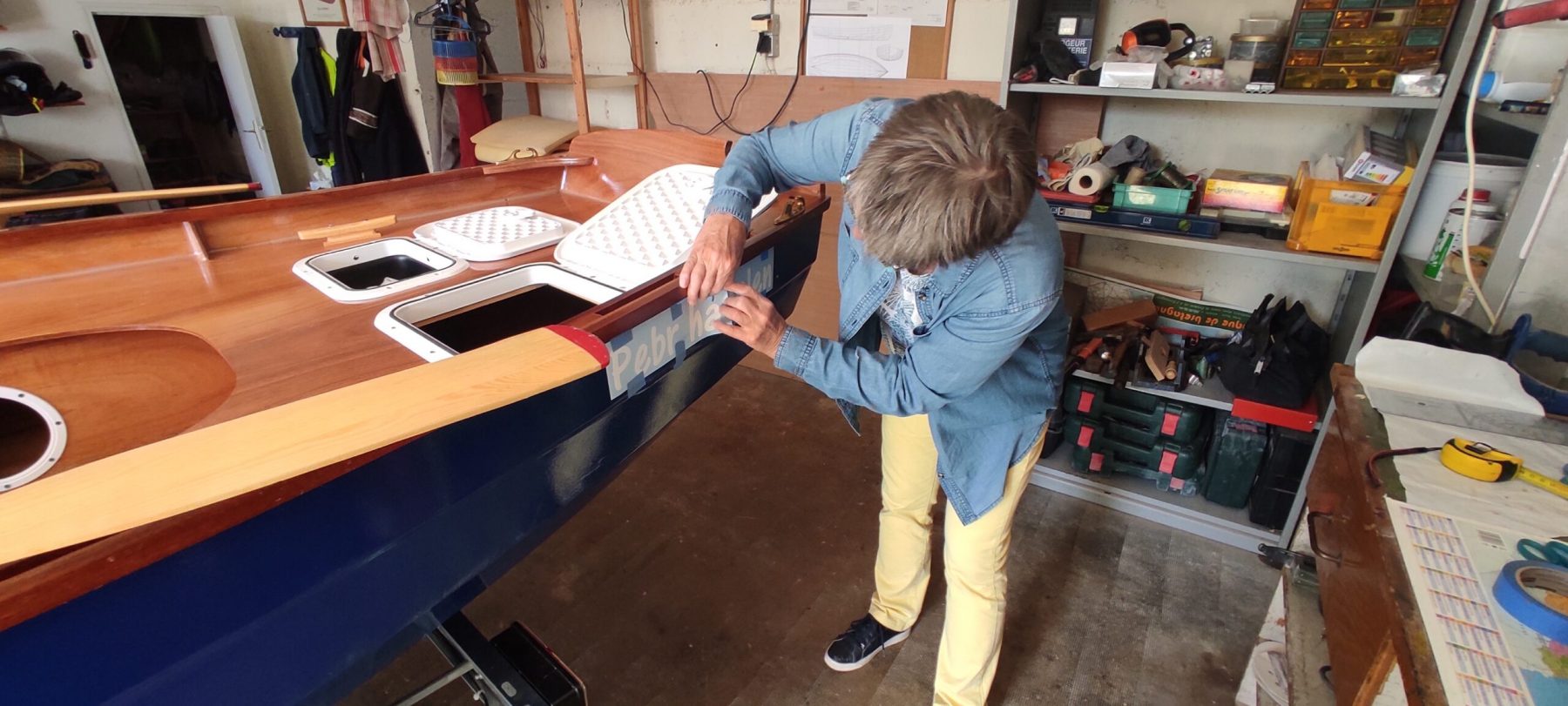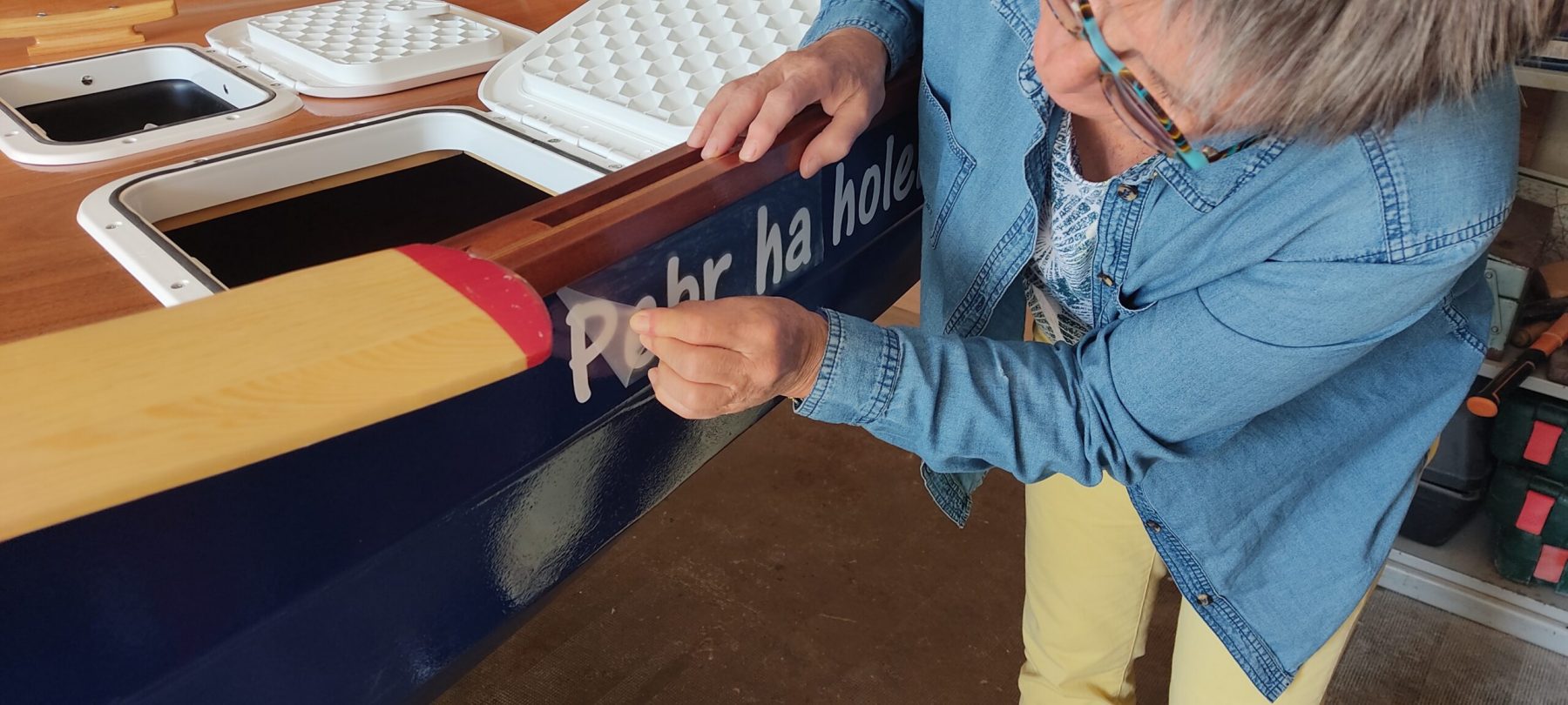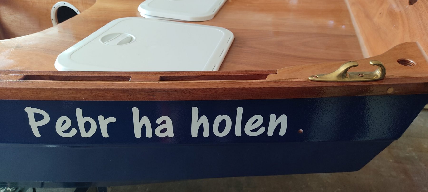 Donner un nom à un bateau c’est un peu comme un remaniement ministériel. plusieurs patronymes circulent pendant un bon moment jusqu’à trouver le bon. De toutes les idées qui nous sont passées par la tête, et ce n’est pas une image, nous avons retenu « Pebr ha holen », amusante allusion à la livrée des sexagénaires que nous sommes.