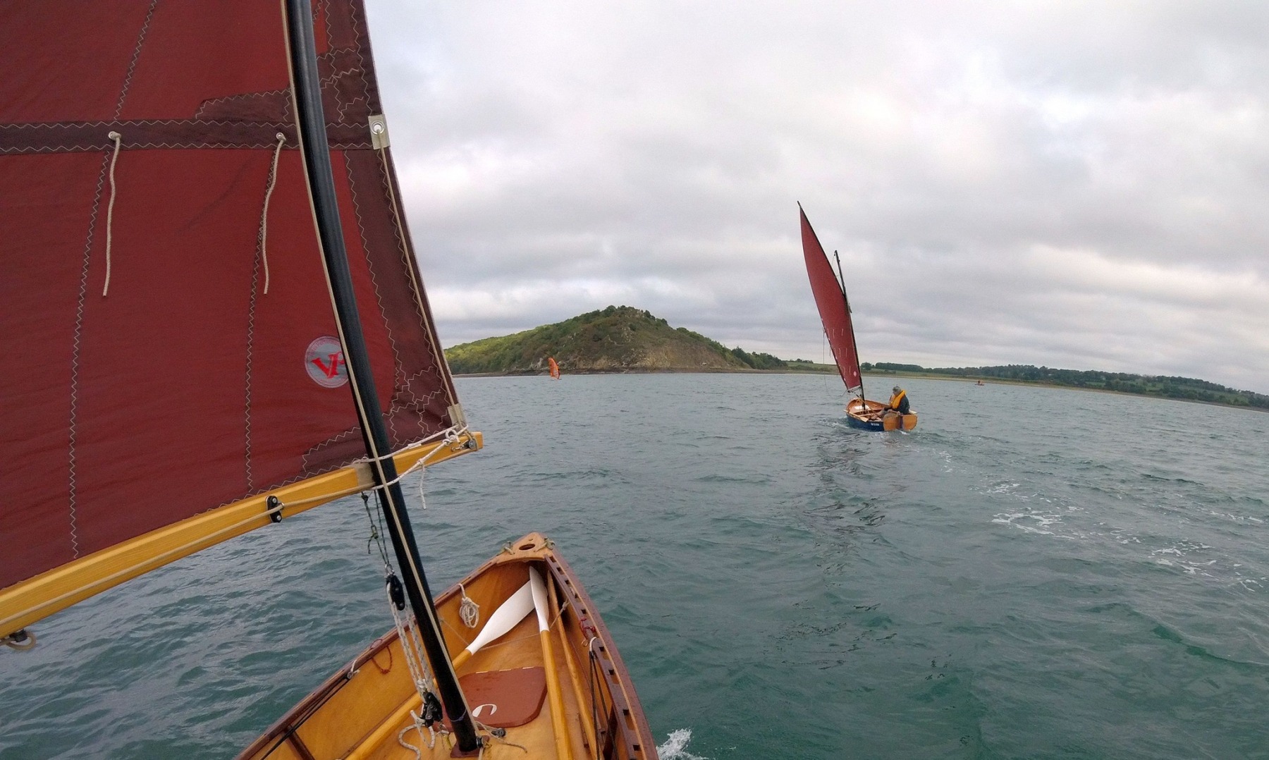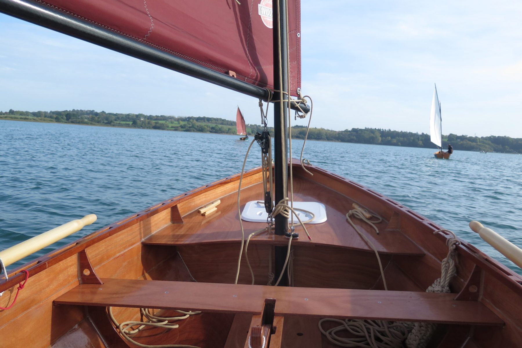 Après un premier bord et un virement sans encombre au pied du Mont Garrot, un deuxième virement vent arrière mal maîtrisé va nous mettre au tas. C’est le baptême salé de « Pebr ha holen » et le nôtre par la même occasion. Heureusement l’eau est encore bonne et la température extérieure agréable en cette mi-octobre.