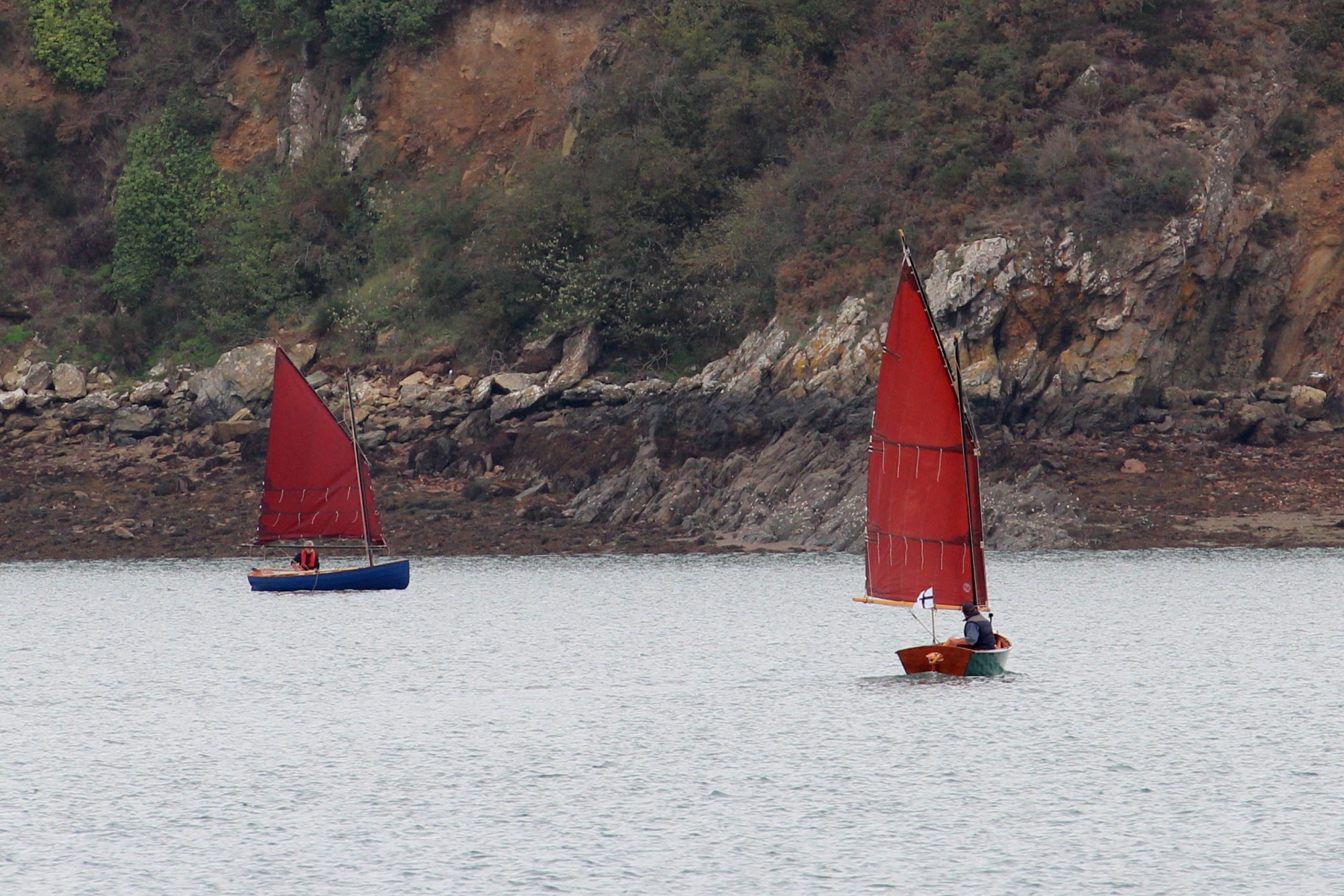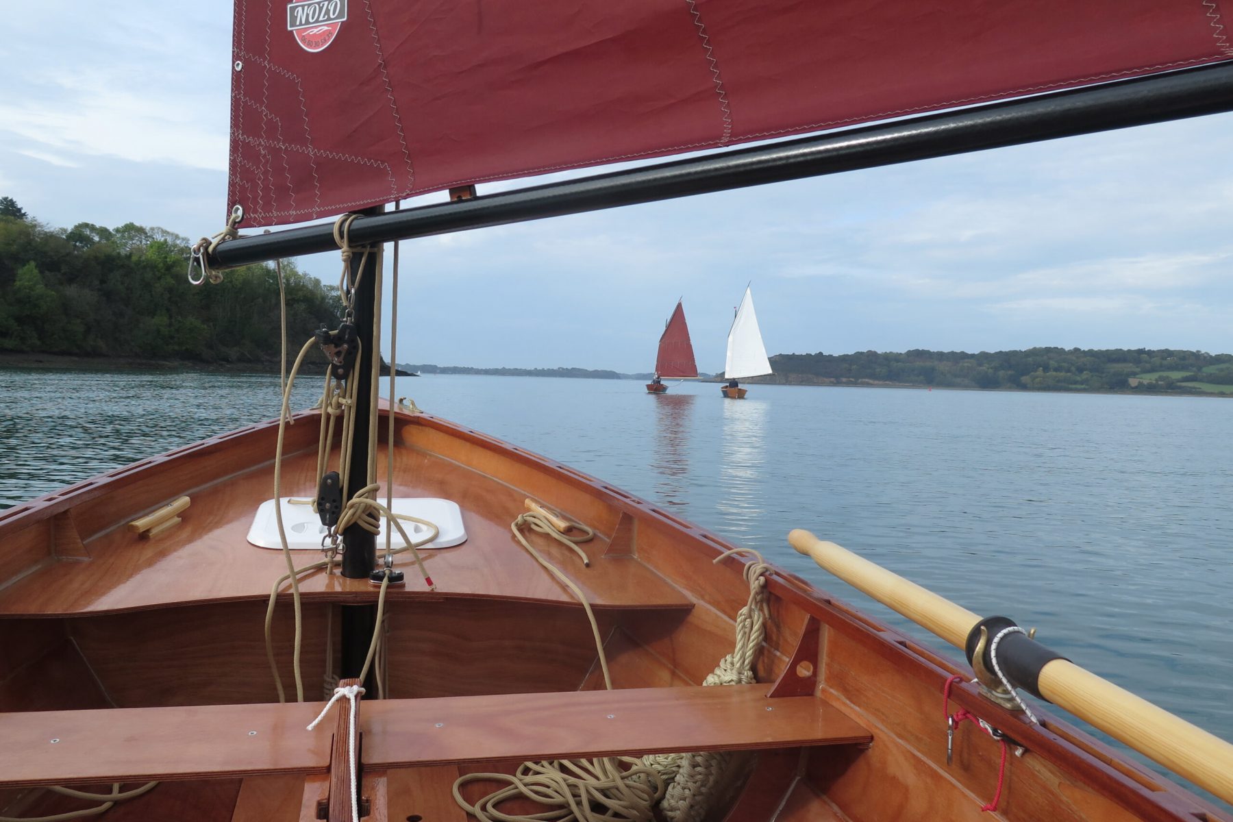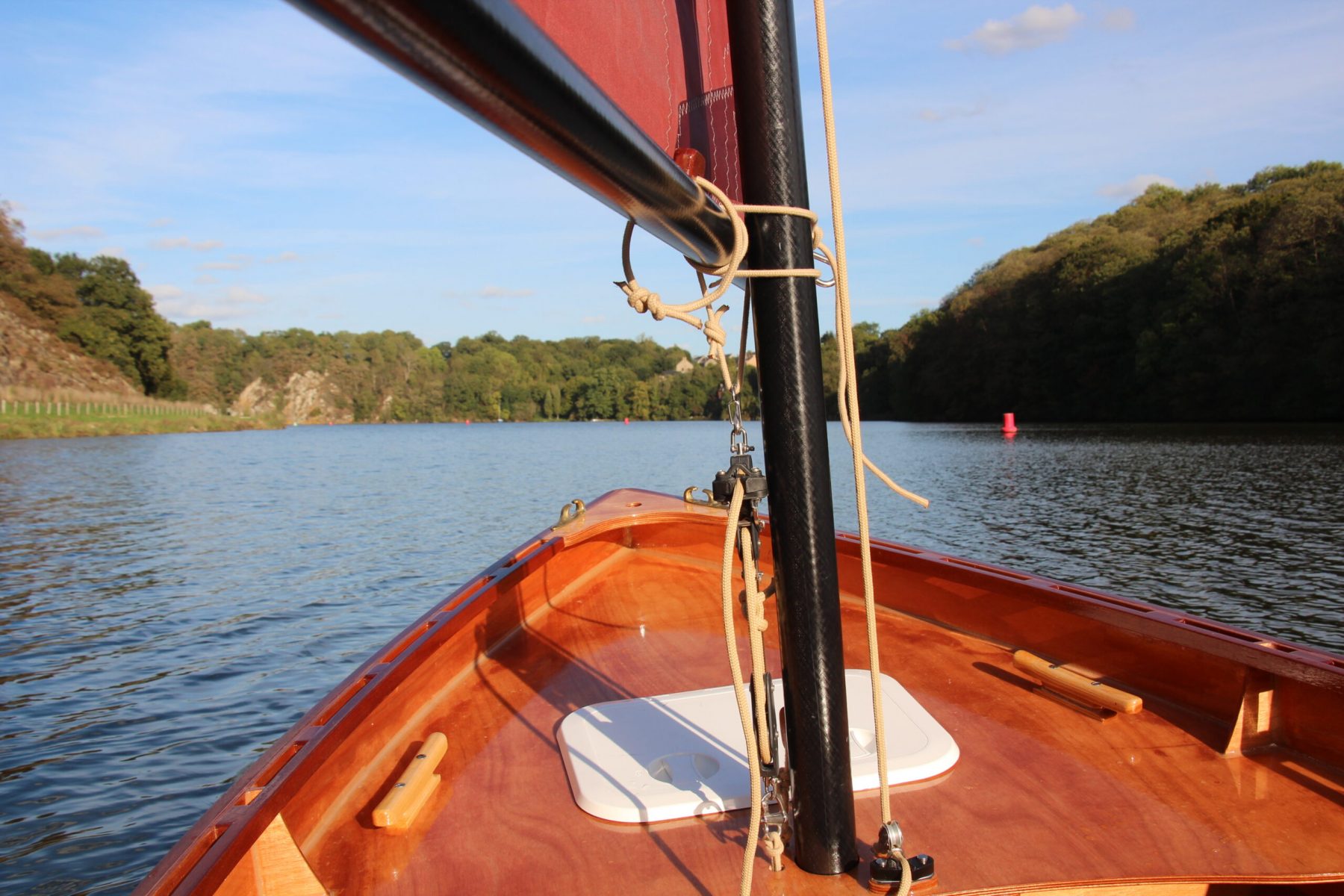 Cette fois j’ai réduit la toile, au prétexte de tester mon système de prise de ris et objectivement pour perdre en puissance. Seul à bord , peu toilé et ballasté, le bateau se comporte bien. Le vent est plus faible que prévu et je prends le temps d’apprécier cette navigation. Avec Denis, nous allons remonter la Rance pour passer les ponts Chateaubriand et St Hubert en tirant patiemment quelques bords.