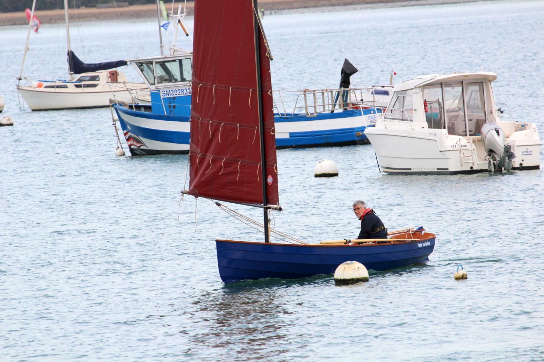 Le temps de redresser le canot, de regrimper à bord et de remettre un peu d’ordre dans tout cela, sous l’œil vigilant de Philippe et de Denis, merci à eux, nous repartons pour quelques bords, histoire de ne pas en rester là. Mais le froid et l’humidité ont raison de nous et nous écourtons cette première sortie. Toutes mes excuses Martine, pour cette sortie poivrée et salée !