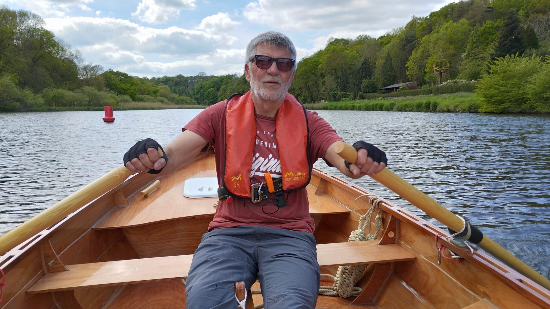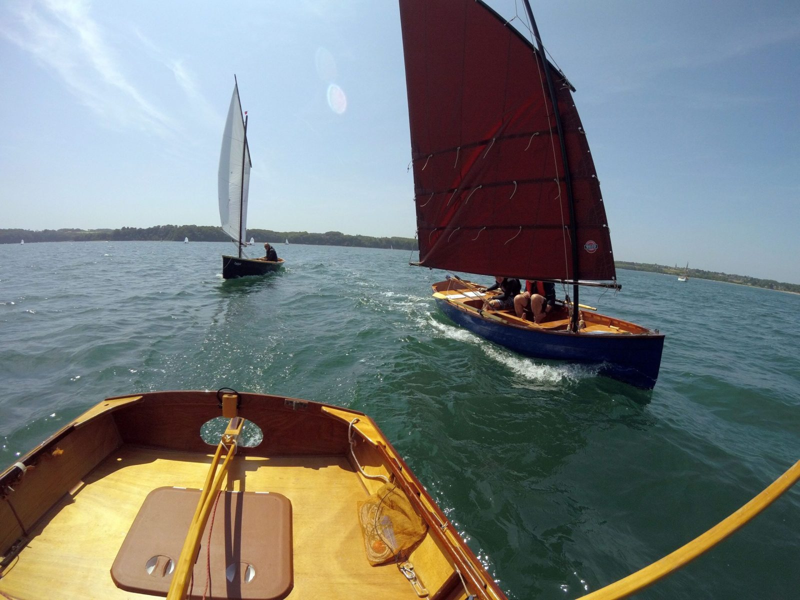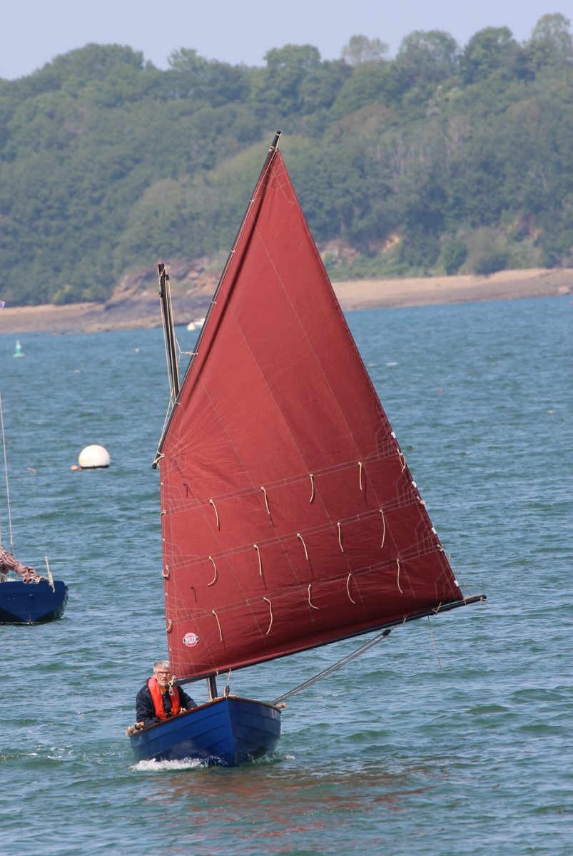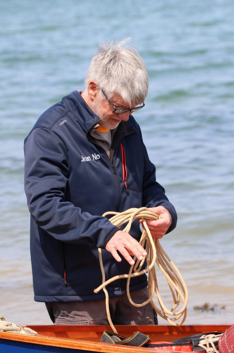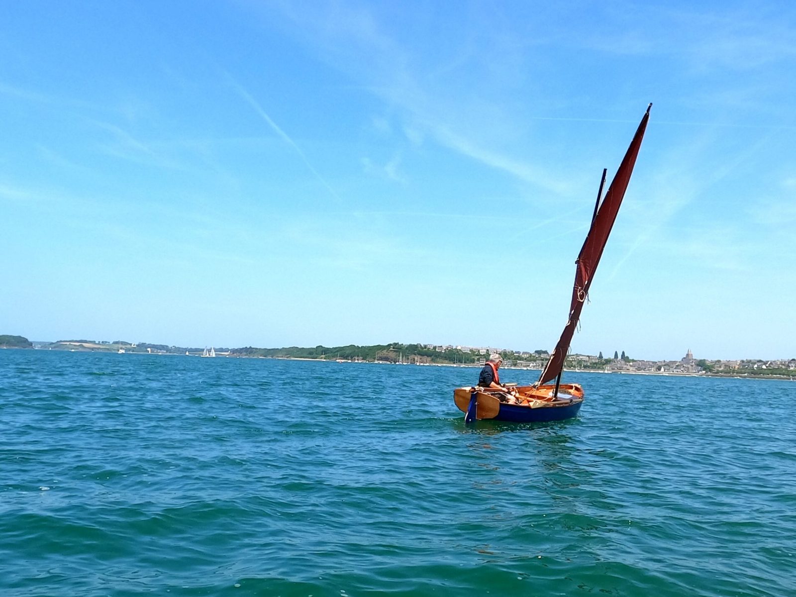 Le régime de Nord-Est s’est bien installé depuis un moment sur la région. Samedi 23 mai, le vent semble ne pas trop vouloir forcir dans la soirée. Denis et Thierry sont sur l’eau. Denis avait été contacté il y quelques temps par Adrian, amateur de voile sportive, et de voile tout court d’ailleurs. Adrian s’intéresse aux canots voile-aviron et particulièrement au Silmaril pour un programme de sorties en famille. Une escale technique à St Suliac me permet de le récupérer et me voilà avec un équipier à bord pour cet après-midi de navigation. Adrian semble séduit par le canot et nous naviguons de conserve avec Denis et Thierry en remontant au vent vers La Landriais. Je profite de sa présence et de son expertise pour prendre quelques conseils de manœuvre.