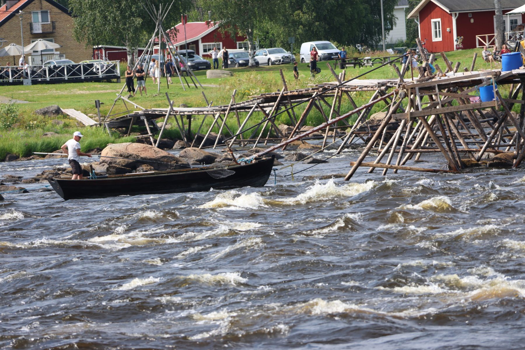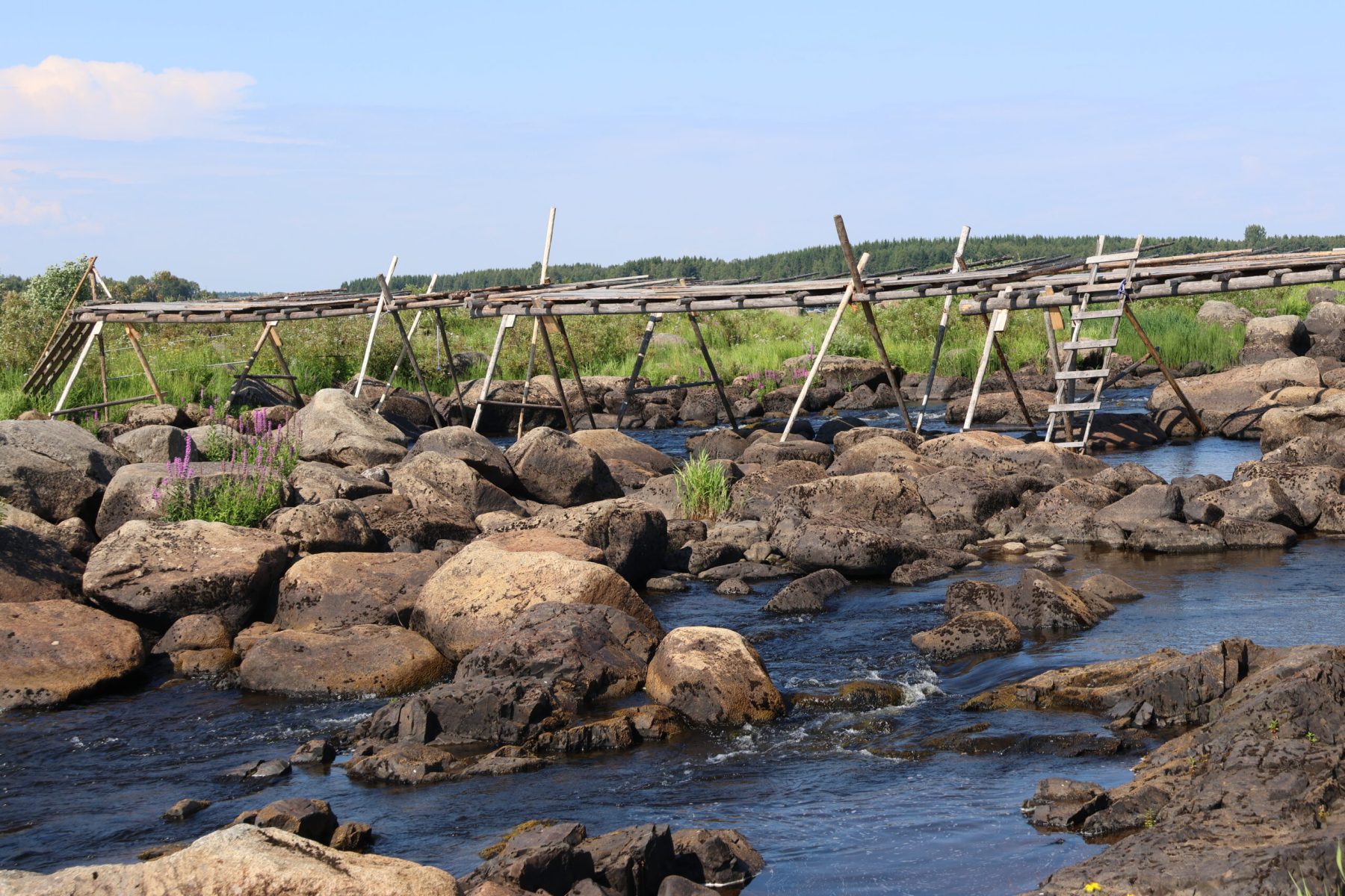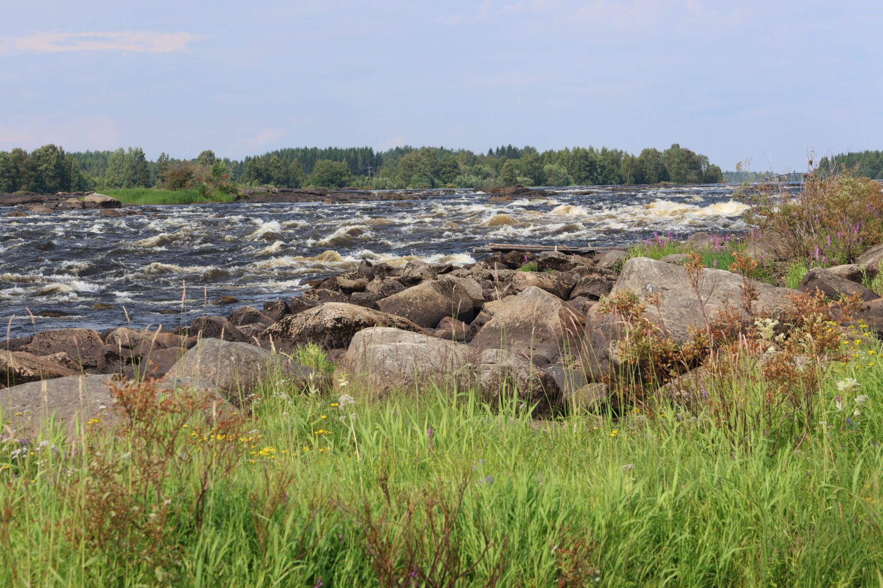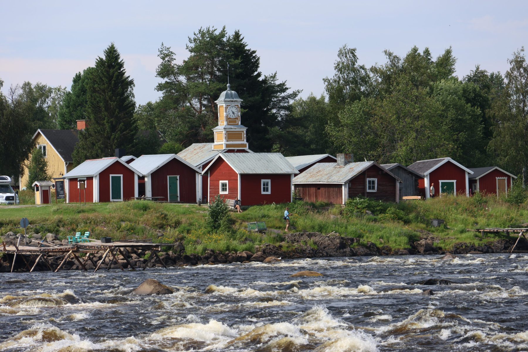 Un clin d’oeil à notre dernier voyage scandinave. Le 18 juin 2018, nous nous étions arrêtés aux rapides de Kukkolaforsen, sur la rivière Torne côté Suédois, et ce 24 juillet 2024 (pure coïncidence de date), nous voici à Kukkolankoski du côté finlandais.