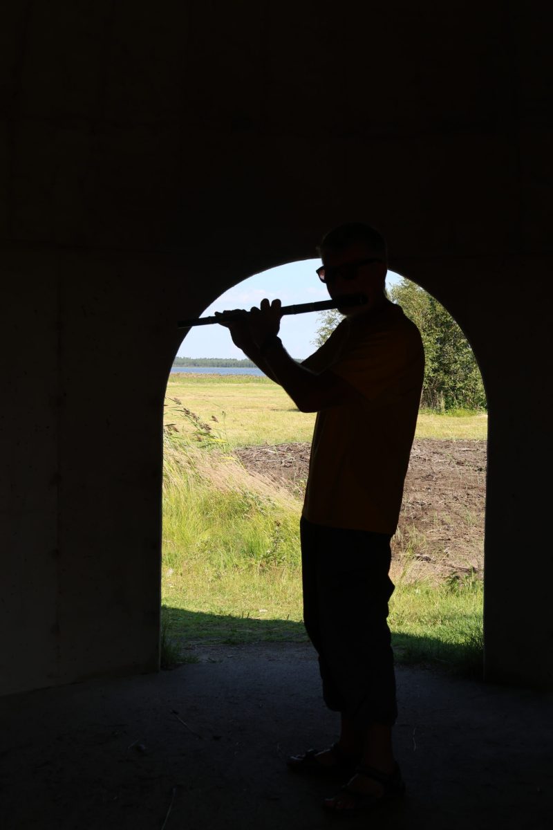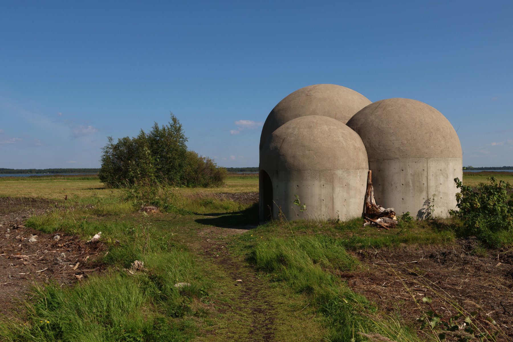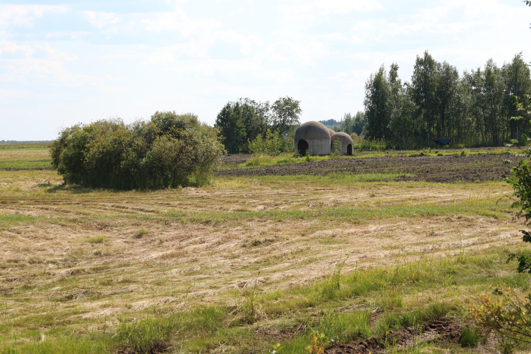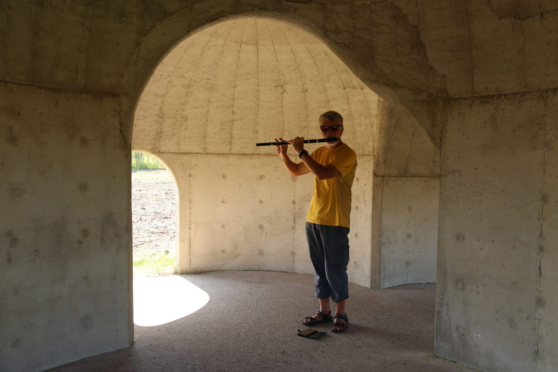 Au gré de nos balades, on tombe parfois sur des choses étonnantes. Au bout d’un chemin près d’un abri barbecue, une structure tout droit sortie de la planète Tatooine nous intrigue. L’Organum, trois dômes de différentes tailles, est une œuvre du sculpteur acoustique Lucas Kuhne. Ouvert à tous vents, je ne résiste pas à l’envie d’essayer cet amplificateur de béton. J’apprécie beaucoup le rendu sonore.