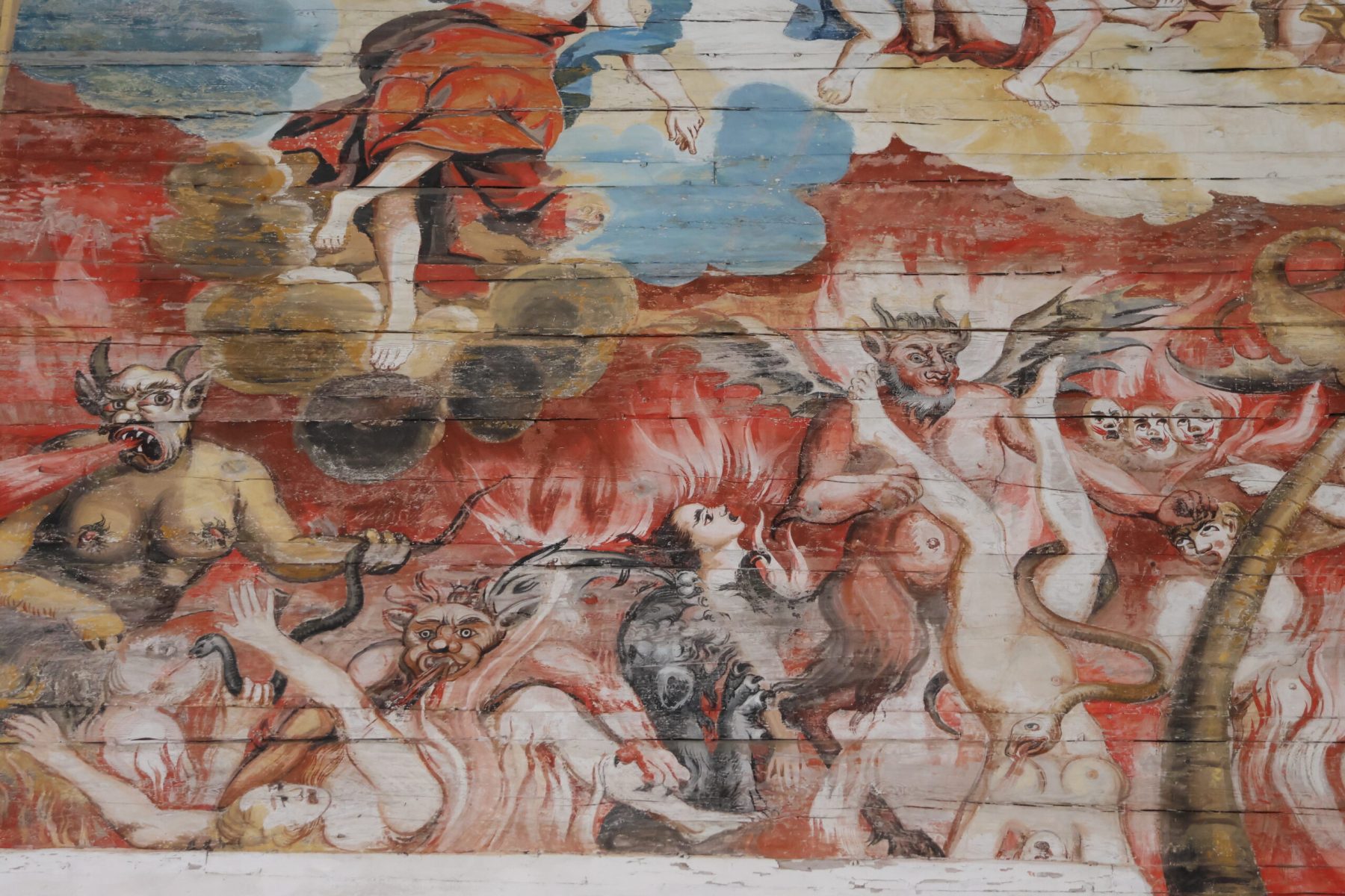 Les églises font partie de nos centres d’intérêt, plus pour l’attrait patrimonial que religieux. En Finlande, on découvre des églises aux murs décorés de fresques datant pour certaines du XVIe siècle. Les scènes inspirées de la Bible parfois naïves, peuvent être terrifiantes comme la représentation du jugement dernier de l’église de Paltaniemi.