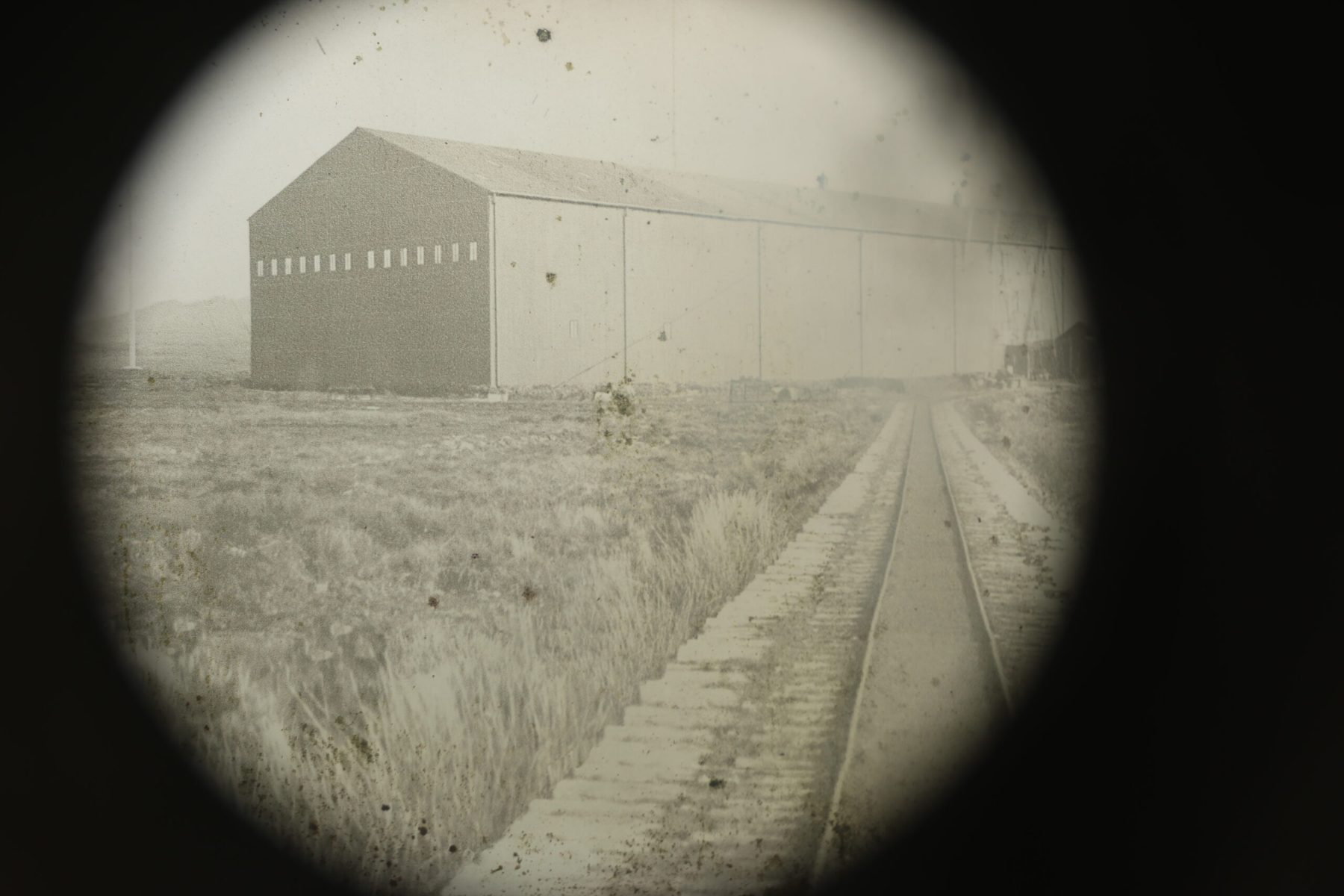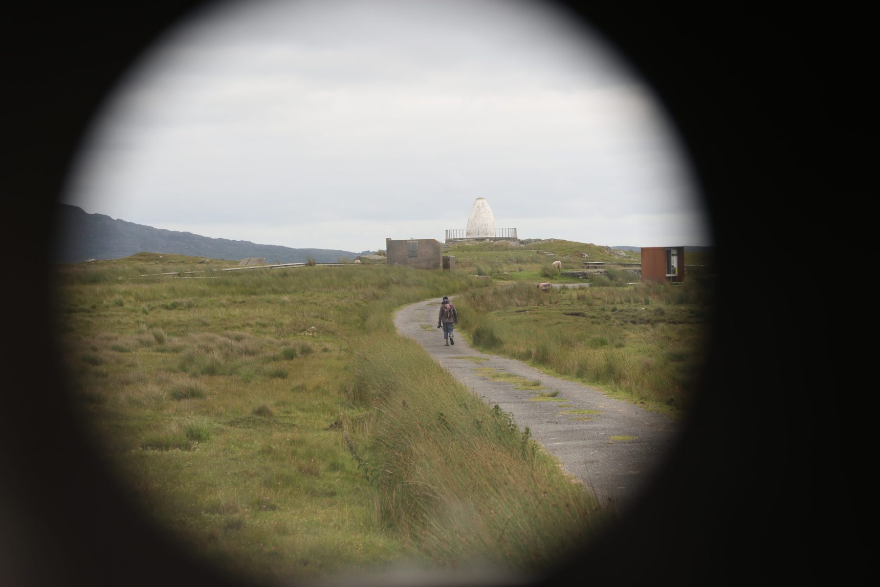 Des installations radio, il ne reste que les fondations des bâtiments et quelques photos d’époque. Le sentier suit, à travers la tourbière, le tracé de la petite voie ferrée qui deservait la station et nous mène jusqu’au site de l’aterro-crash d’Alcock & Brown.