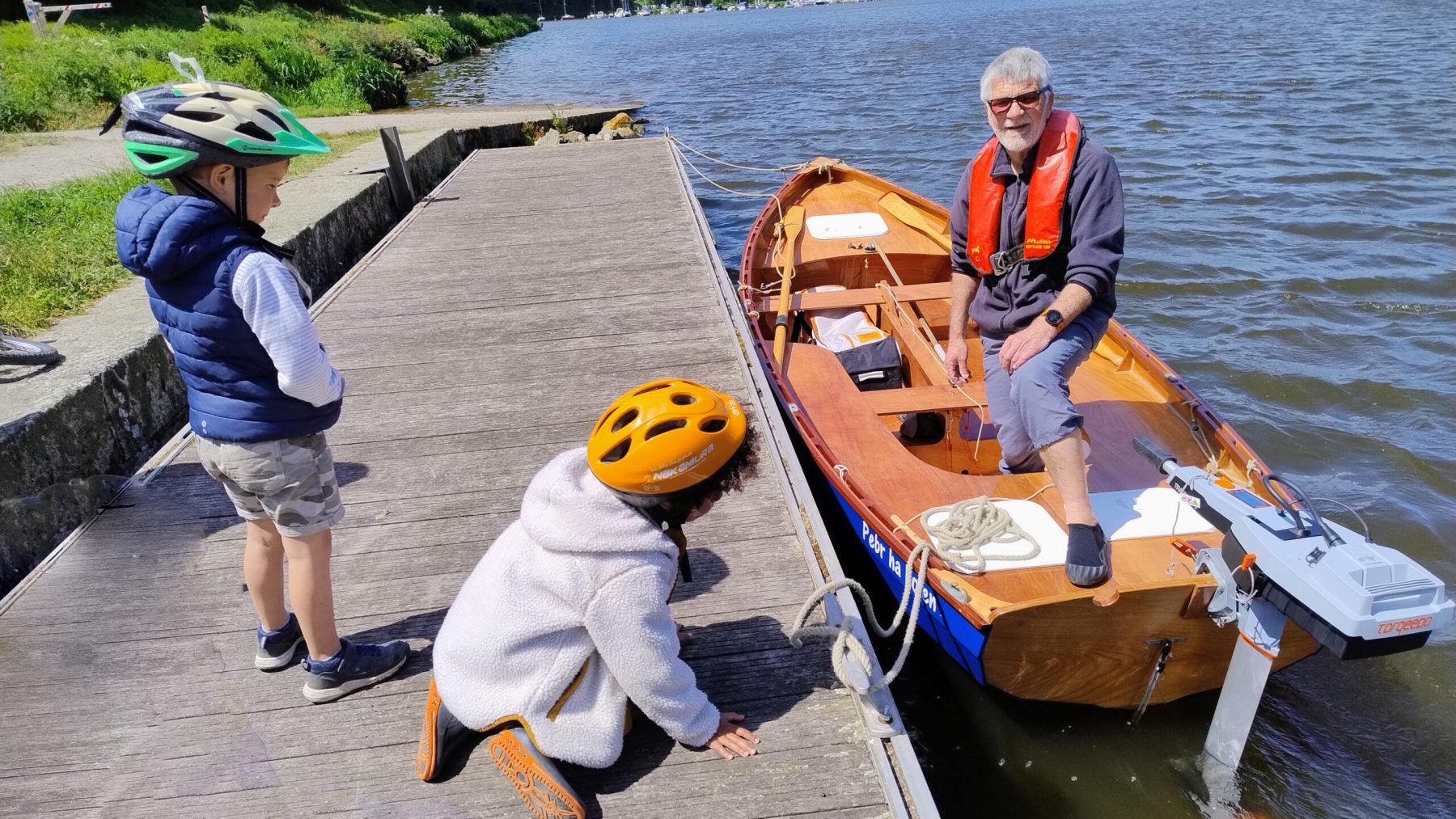 Cela fait quelques mois que j’ai fait l’acquisition d’un hors bord électrique, et malgré le fort vent de Nord Est, nous allons tester l’engin sur la Rance avec comme souvent une mise à l’eau au Petit Lyvet sous le regard curieux d’un jeune public de passage.