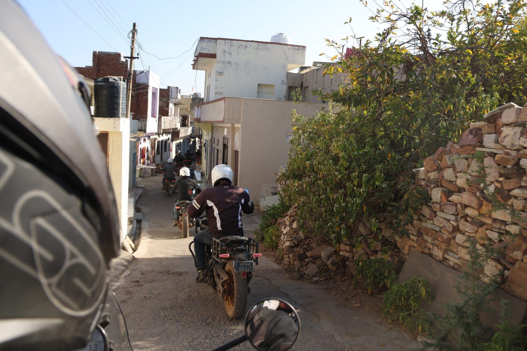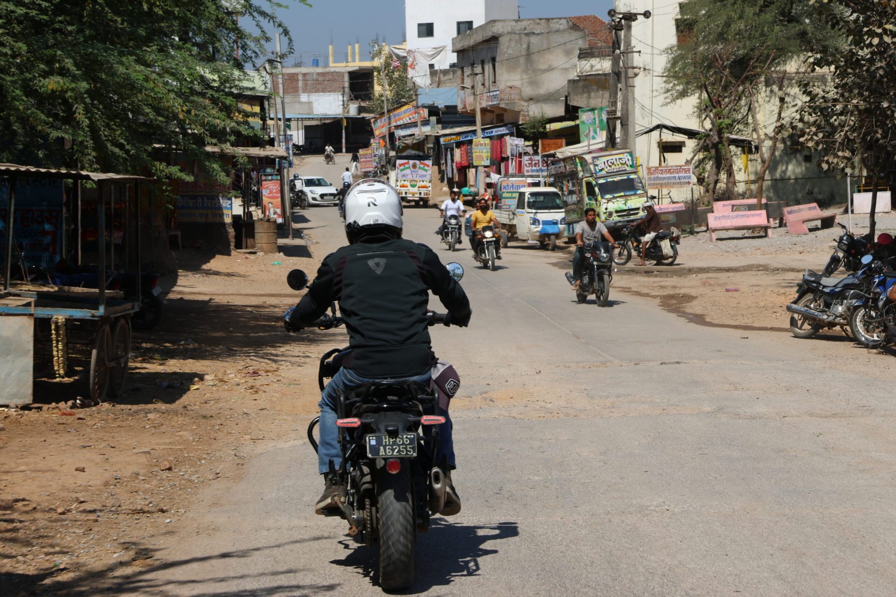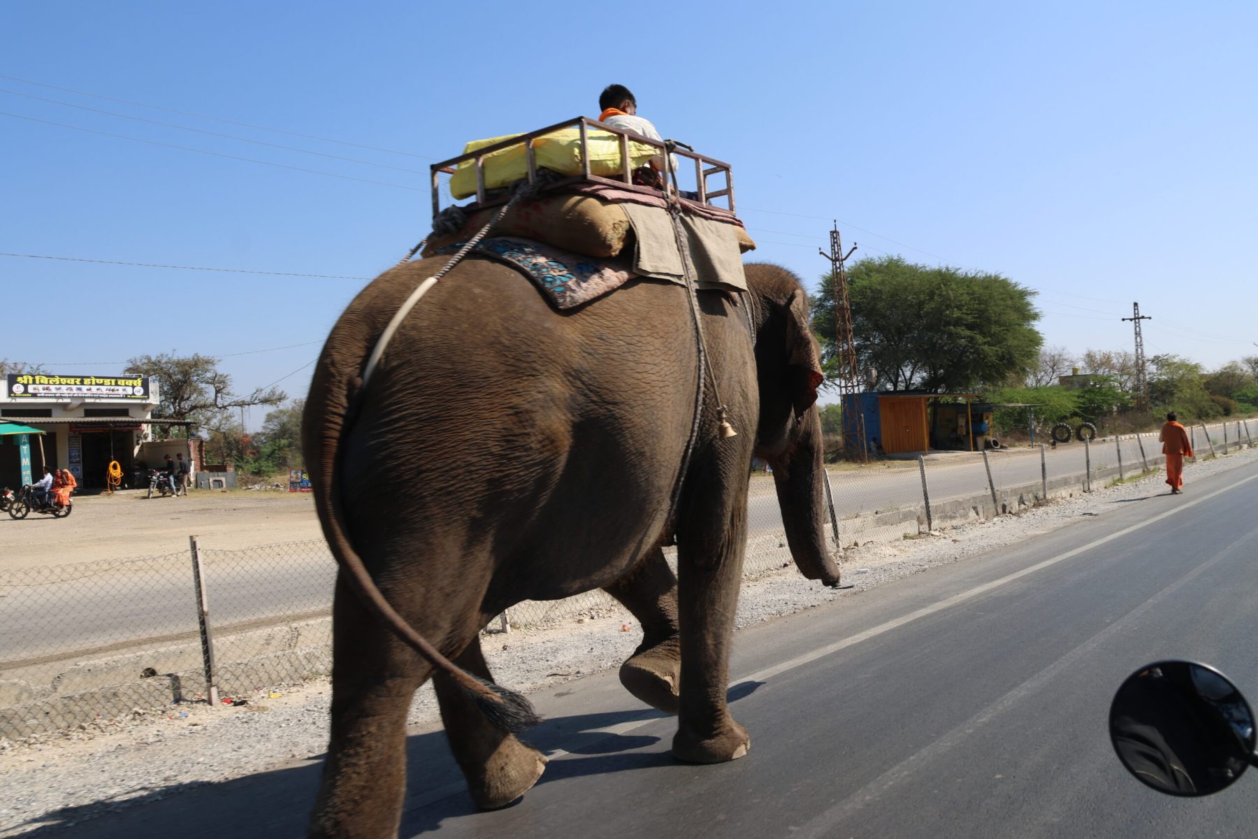 Nous laissons Udaipur pour rouler vers Chittorgarh et sa forteresse. La route nous réserve toujours autant de surprises, comme cet éléphant doublé sur l’autoroute. Et comme chaque jour, nous alternons bitume et chemins creux.