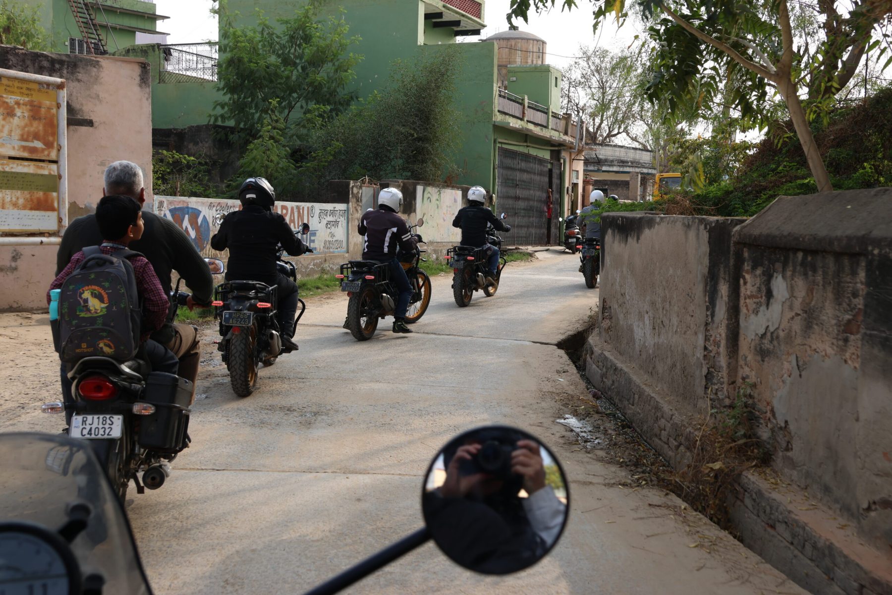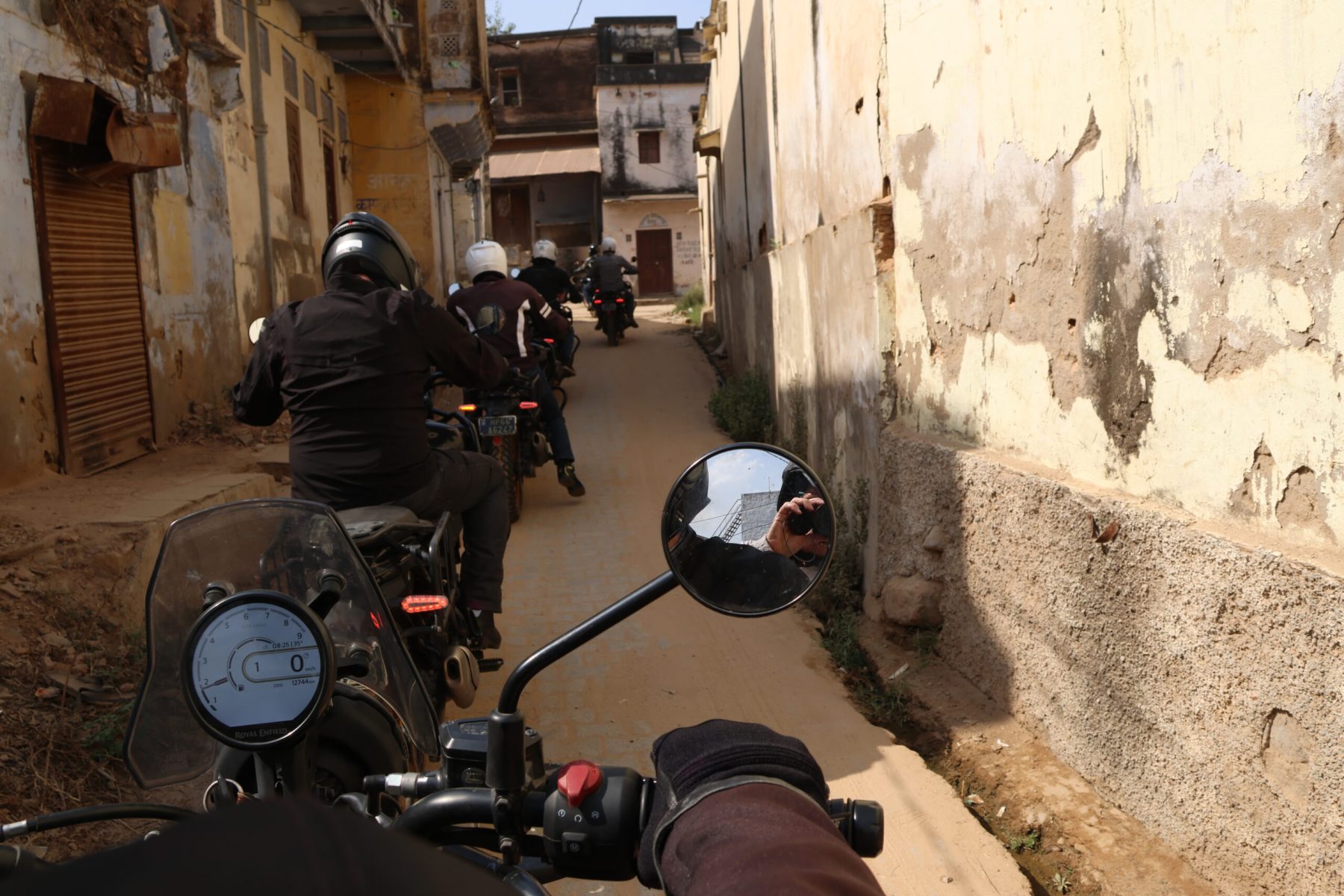Sortis de Delhi nous récupérons nos motos à Rewari. Je suis un peu déçu, nous ne ferons pas ce road trip avec la mythique Royal Enfield 350. L’Hymalayan, de la même marque, est un trail de 450cc un peu plus puissant et peut être plus adaptée à une conduite avec passager.
