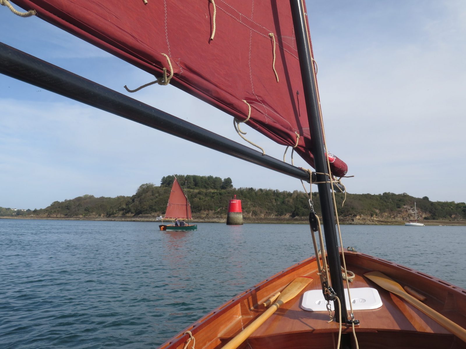 Le retour se fera au près avec le flot et de belles pointe à plus de 6 nœuds. Le canot se comporte bien dans le petit clapot.