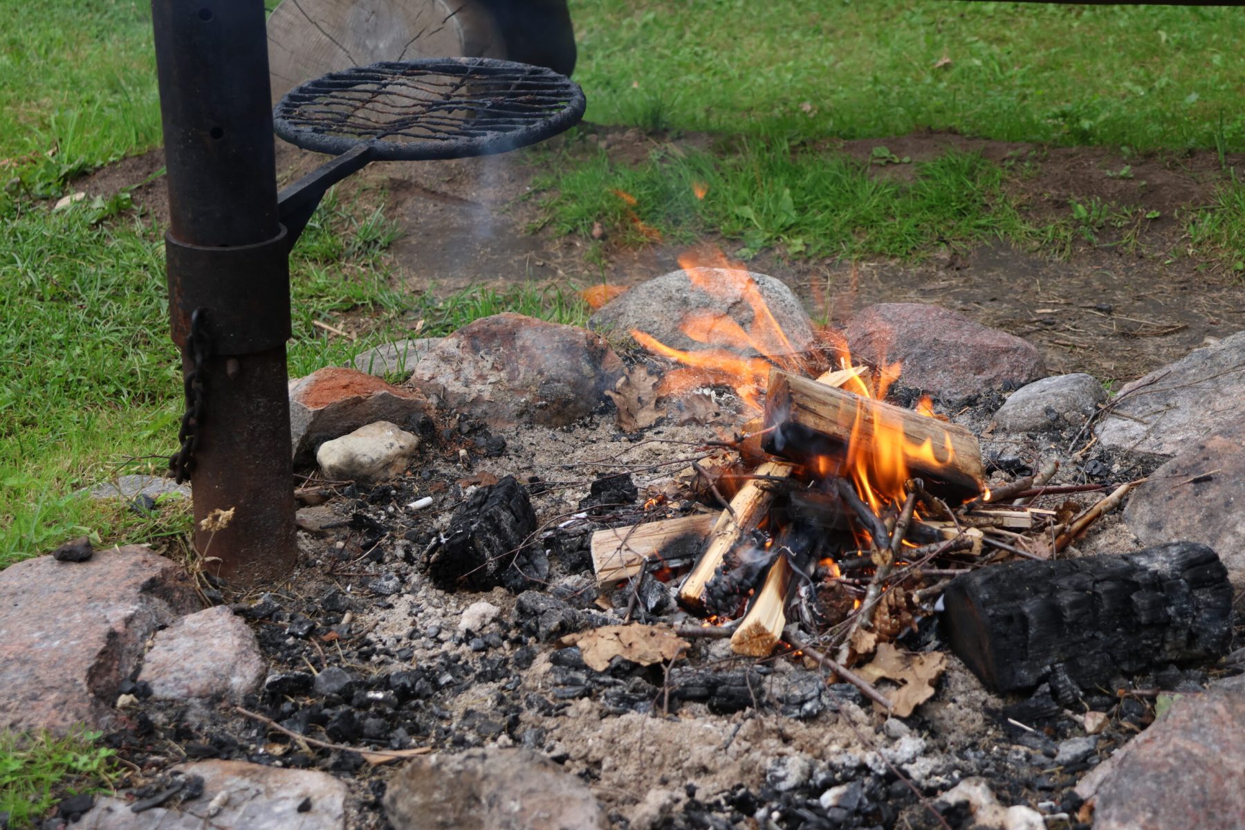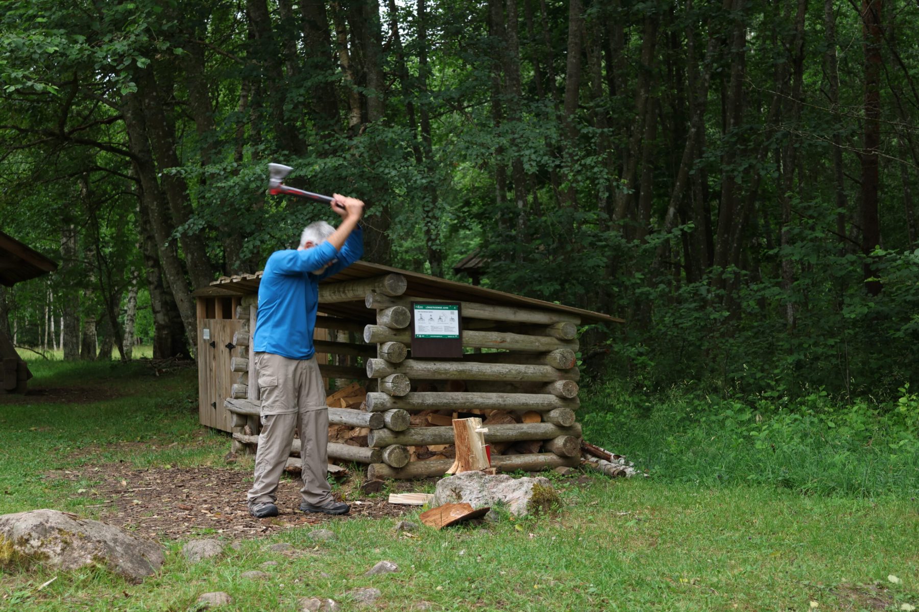 L’espace est dédié à la découverte et au camping nature. Tout comme l’aménagement des sentiers, les aires de camping gratuites sont très bien équipées. À côté du coin pique-nique on trouve une belle réserve de bois pour alimenter le barbecue. Difficile de résister à l’envie de fendre quelques bûches. Un pictogramme très évocateur, près des toilettes sèches, nous rappelle l’effort à consentir pour conserver l’endroit propre.